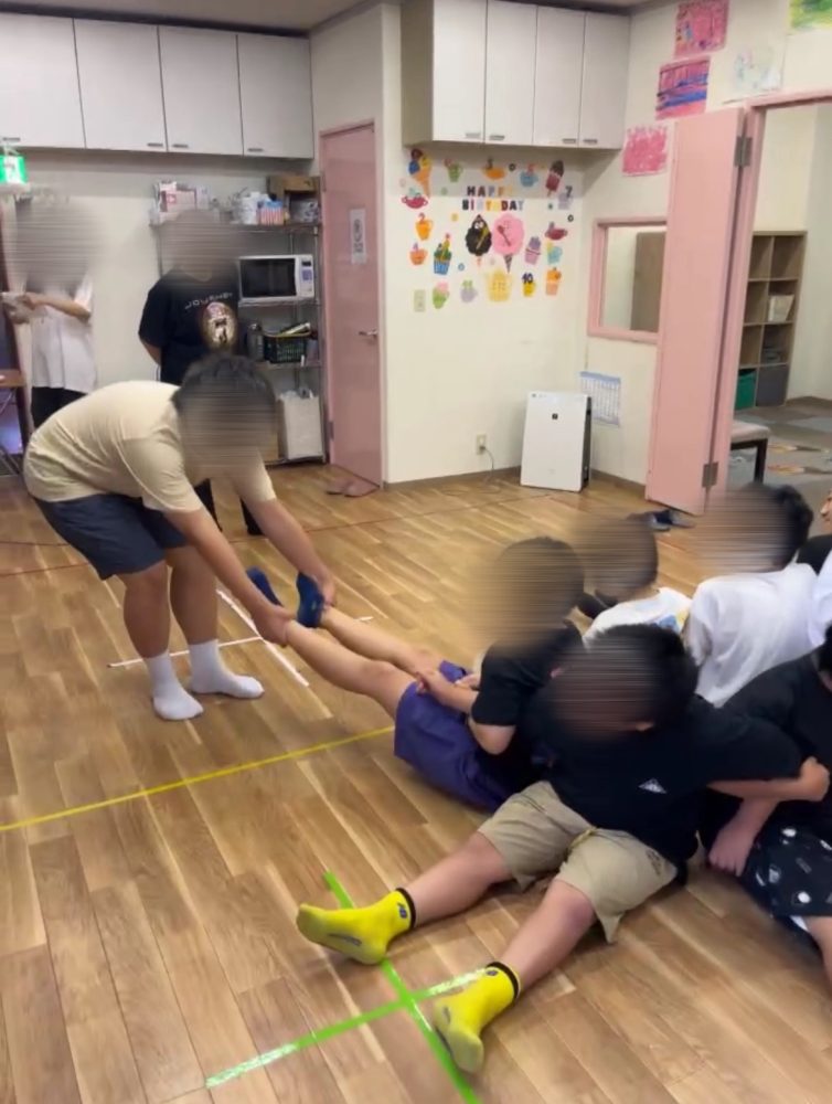 ๅคงๆ นๅดใฏๆŠœใ‹ใ‚Œใชใ„ใ‚ˆใ†ใซใ€ใŠๅ‹้”ใฟใ‚“ใชใง่ผชใซใชใ‚Š่ƒŒใ‚’ๅ‘ใ‘ใฆ่…•ใ‚’ใ‚ฌใƒƒใƒใƒชใจ็ต„ใฟๅบงใ‚Šใพใ™ใ€‚