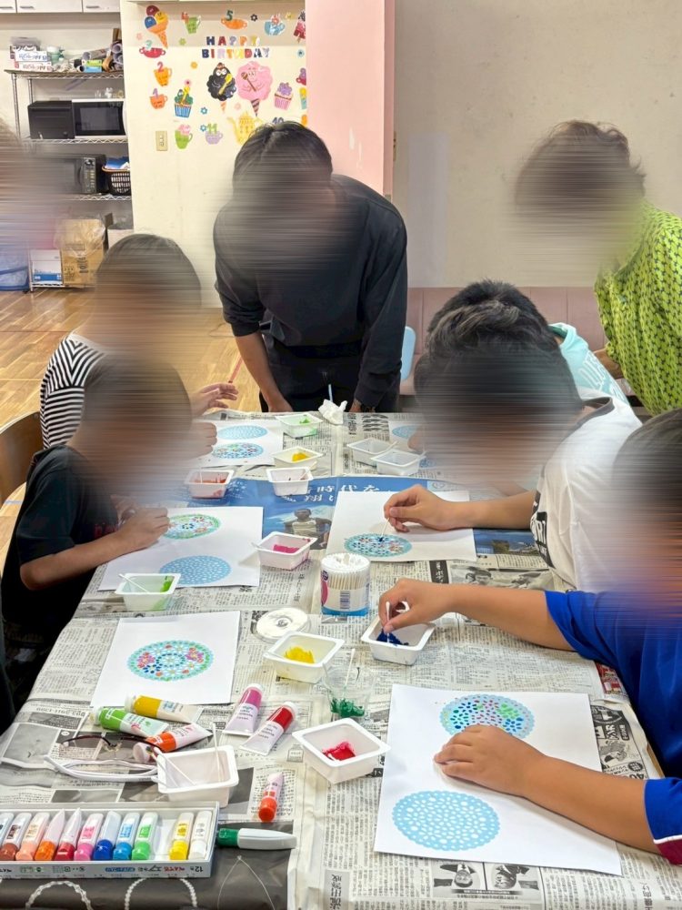 ใ‚ทใƒผใƒซใจ็ตตใฎๅ…ทใ‚’ไฝฟใฃใฆ็ดฐใ‹ใ„็ฉดใซ่‰ฒใ‚’ๅก—ใ‚Š็ถบ้บ—ใชๆจกๆง˜ใŒใงใใพใ—ใŸใ€‚